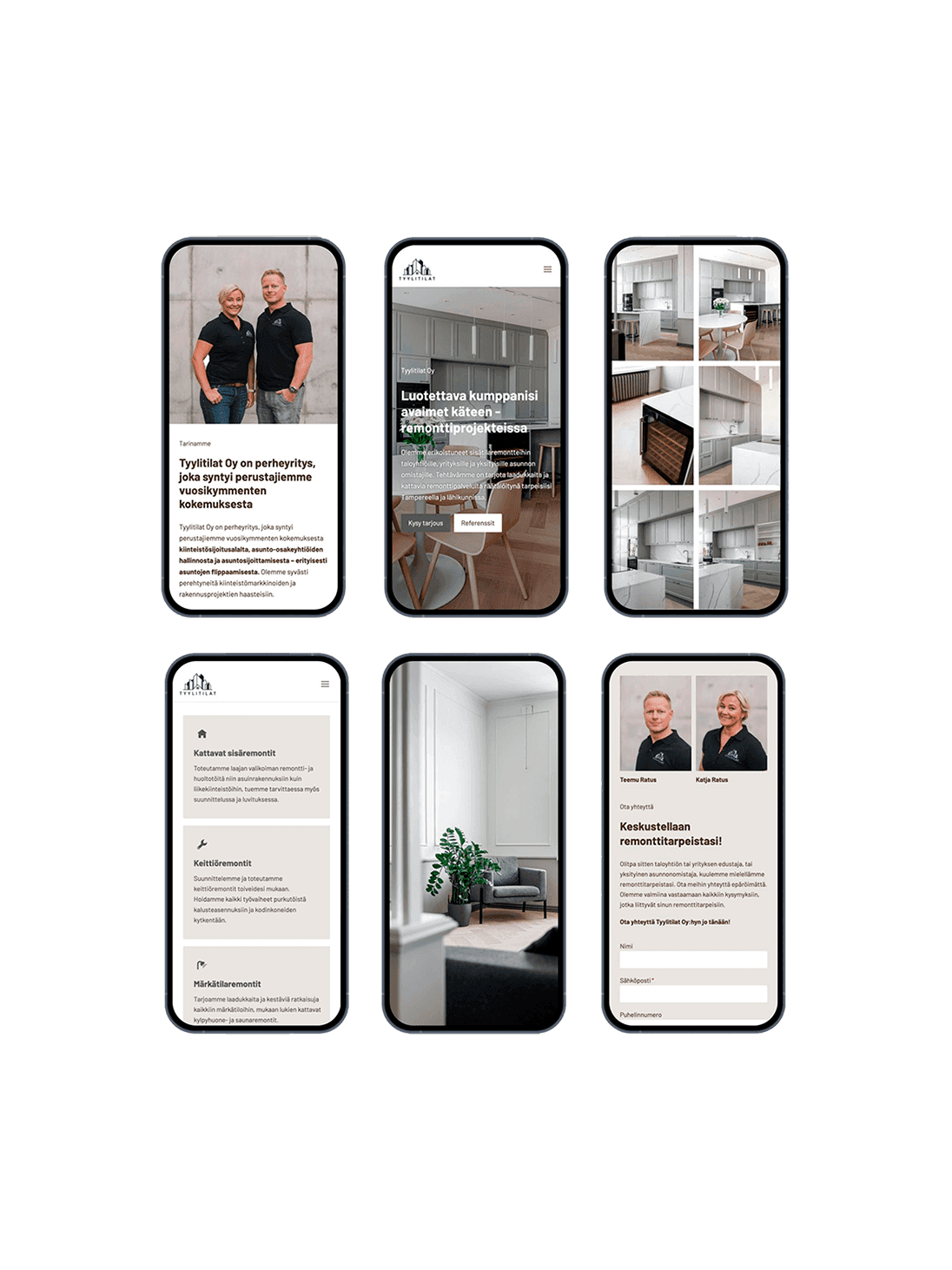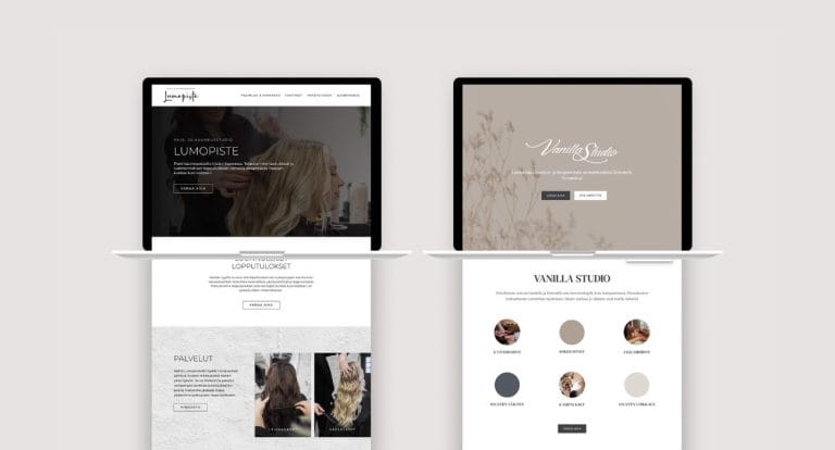 Selkeä rakenne, laadukas yrityksesi näköinen ulkoasu ja valmis tekninen toteutus – kotisivut, jotka näyttävät hyvältä, tuntuvat omilta ja tukevat yrityksesi tavoitteita.