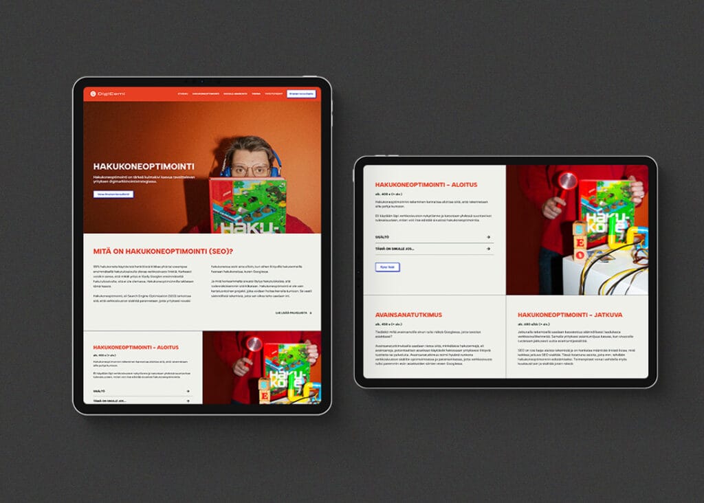 Ilman selkeitä, brändisi mukaisia ja toimivia verkkosivuja et voi rakentaa kestävää digimarkkinoinnin strategiaa, seurata tuloksia tai kehittää yritystoimintaasi.