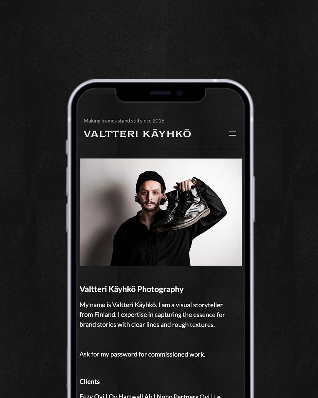 Suomalainen valokuvaaja, jonka työ keskittyy urheiluun, luontoon ja bränditarinoihin visuaalisella tyylillä.